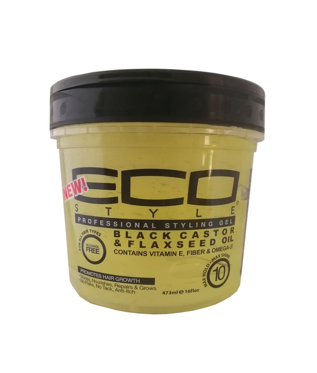 EcoStyle Black Castor and Flaxseed Oil Styling Gel 473 ml helps to nourish, repair and grow hair. Wheat Protein strengthens and protects hair. Like all our styling gels, it is weightless and will leave your hair with a healthy shine and superior hold.