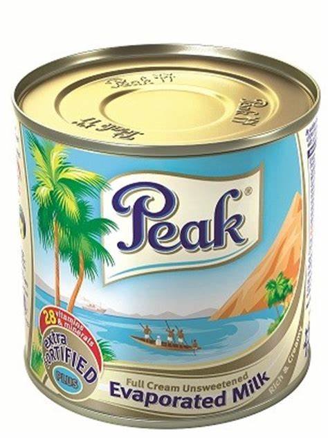 Peak Evaporated Milk is made from high quality fresh milk. Use it hot or cold in your casseroles or sweet porridges, for cooking, baking, and to give that satisfying delicious rich taste in your coffee or as tea whitener.