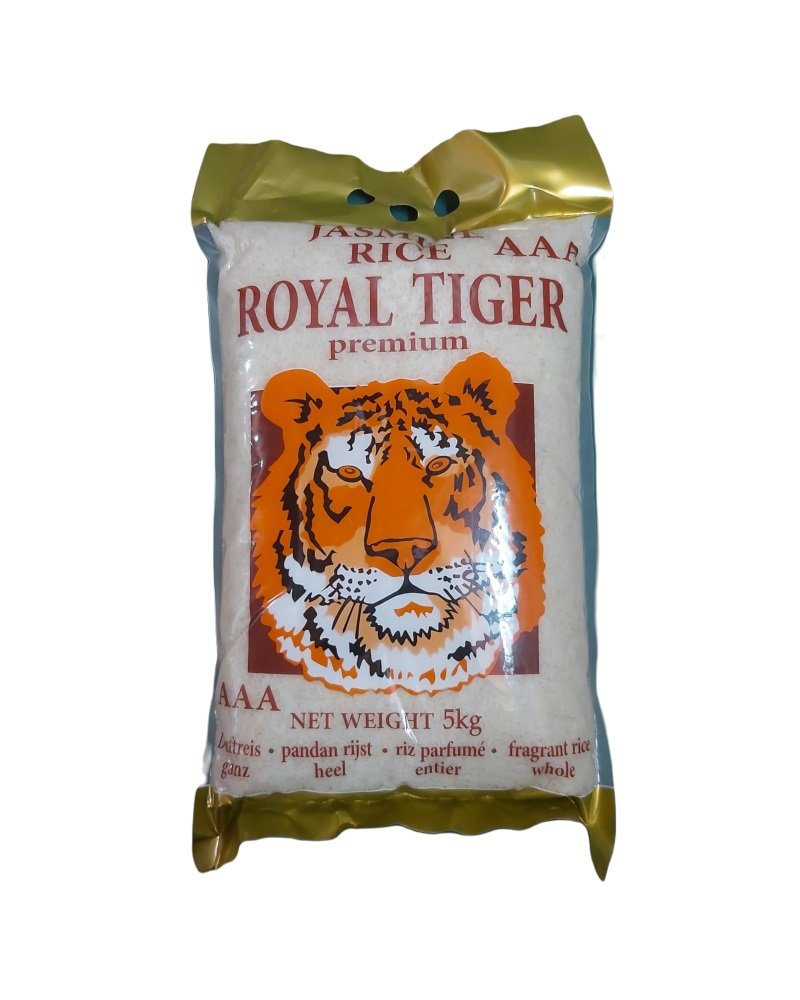 Royal Tiger yra aukščiausios kokybės jazminų ryžių garantija. Išlyginantys ryžiai, tinkantys daugybei azijietiškų patiekalų. Jazminų ryžiai yra tokios pat kokybės kaip Basmati ryžiai, daugiausiai skiriasi didesnis jazminų ryžių klampumas.